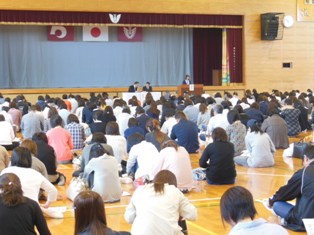 授業参観の後、体育館でPTA・後援会総会が行われました。