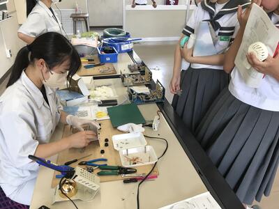 在校生たちから中学生に向けて各科の学習内容についての説明や体験実習の指導がありました!