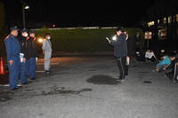 午後8時に、家庭科室を火元に訓練火災発生とし、正門右駐車場に全員避難しました。