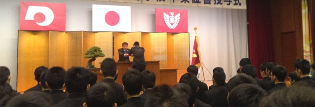 本日は明日の卒業式に向けて会場設営が行われ、その後表彰式が行われました。