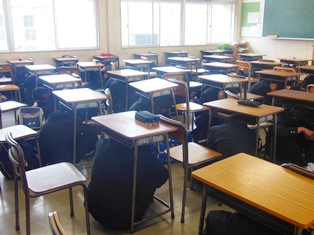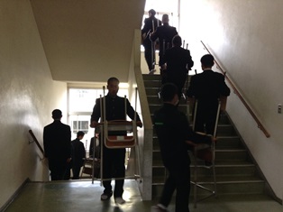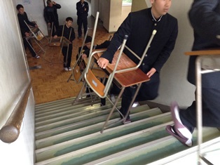 放課後に机とイスを次の学年の教室に運ぶ作業が行われました。