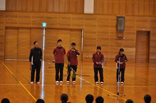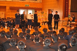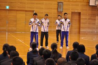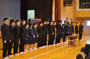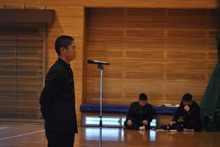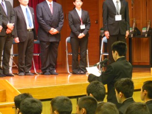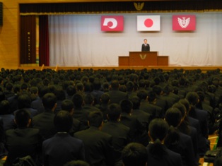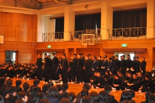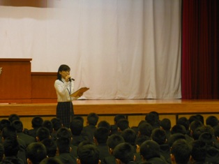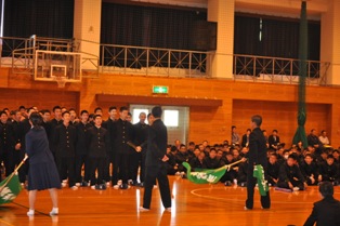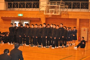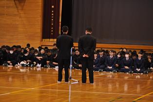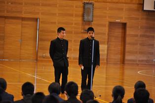 期末考査終了後、水泳部、ものづくりコンテストの表彰式とラグビー、水泳、ものづくり、野球の選手推戴式が行われました。