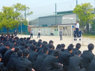 しっかりと頭を上げて先生達の話を真剣に聞いている八代工業生の姿を先生達も忘れないことと思います。