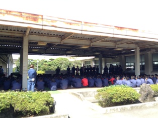 避難訓練の後は、消火器の取り扱いについて講習が行われました。