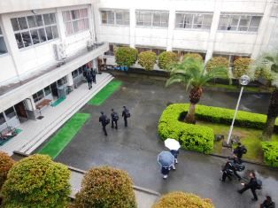 選手団と、応援の生徒達