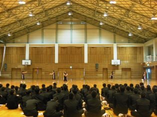 テストが終わった後、体育館にて表彰式と野球部の推戴式が行われました。