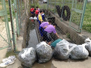 バスケ部が校内を流れる川の清掃をしてました!