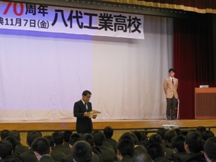 転退任式が行われ、先生方一人一人から心のこもったメッセージを生徒達に伝えていただきました。八代工業高校での愛情たっぷりの指導、ありがとうございました。
