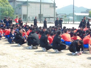 その後南九州地区予選大会に出場する陸上部の推戴式が行われました。