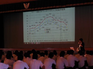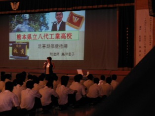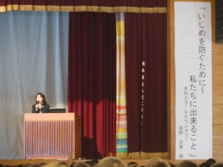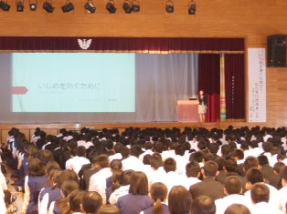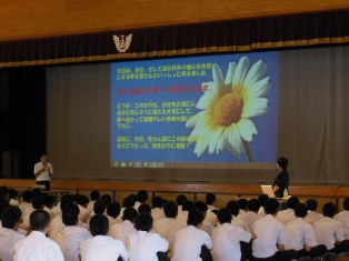 演題は「自分でつくろう、自分の未来~大切にしよう自分、他人の心と体~」でした。