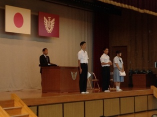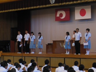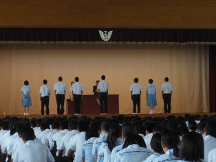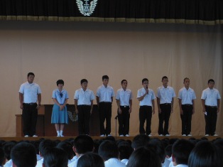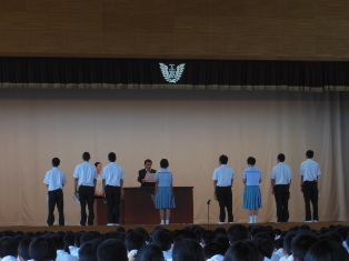 学校長と生徒会長より激励の言葉があり、最後に選手から決意表明がありました。