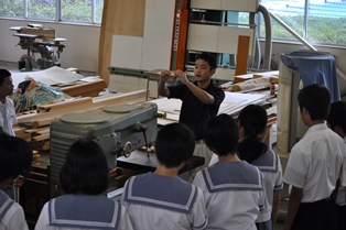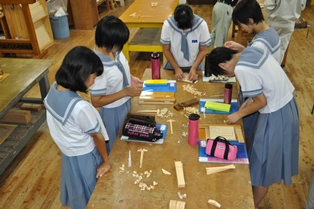 インテリア科では木材加工と着彩技法についての体験が行われました。