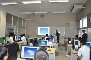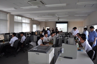 情報技術科ではロボットの実演、FLASH作成体験、電子機器組立見学及びハンダ付け体験が行われました。
