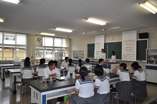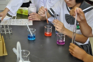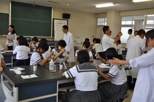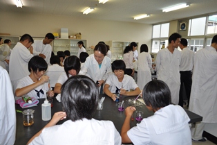 工業化学科では中和滴定とアロマビーズ作りの体験が行われました。