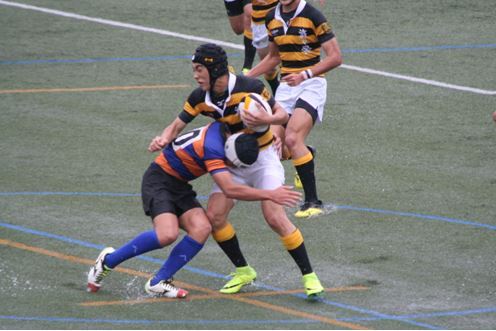 試合は、序盤から相手の低く鋭いタックルに苦しみました。なかなか得点が出来ない状況が続きましたが、ようやくモールからサイドを突きトライ。5-0で折り返すと、後半2トライを重ね15-0でノーサイドとなりました。
