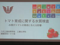 10月12日㈯に、お祭りでんでん館において開催された特別講座に出席してきました。本校からは、課題研究のひとつ『水質がトマトの育成に与える影響』班が参加しました。