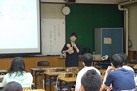 ?」という質問を投げ掛けられました。赤ちゃんの頭がお母さんの産道を通りやすいような形をしているのは安全に出産するために理にかなったことであり、赤ちゃんの皮膚の色や体重の変化は、外界に適応していく証しであるという話に、生徒たちは真剣に耳を傾けていました。