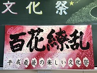 シンボルの「百花繚乱」の字は3年次生の竹下さんの力作です。