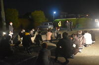 その後、火災が発生した想定で本校駐車場への避難を行いました。