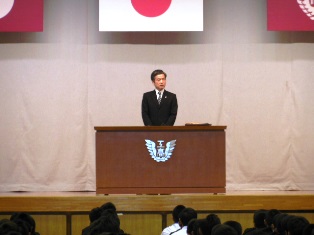 学校の歴史や部活動の活躍の歴史、校訓「誠実」に込められた想いなどを話されました。