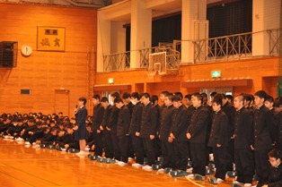 しっかりと頭を上げて先生達の話を真剣に聞いている八代工業生の姿を先生達も忘れないことと思います。