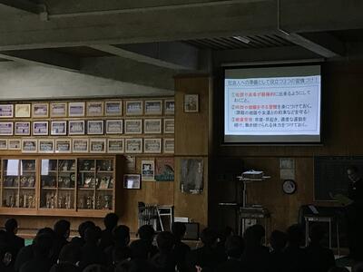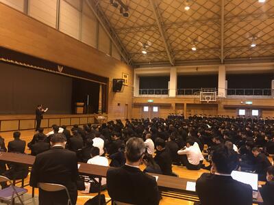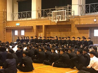 3年生にとって高校生活最後の学年末考査が終了しました!その後、熊本県高校教育課キャリア教育スーパーバイザーの太田先生による就職講話が行われました。