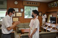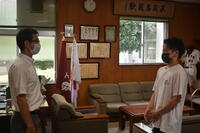 先日、神奈川県小田原市で開催された、全国高等学校定通体育大会(バドミントン競技)で見事優勝を成し遂げました、2年生一原君が学校長に報告を行いました。