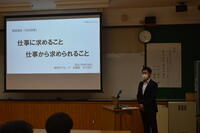 演題は「仕事に求められること仕事から求められること」! 生徒のみなさんも実際の会社で活躍されている方の話を直接聞く良い機会となりました。