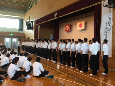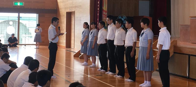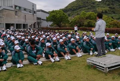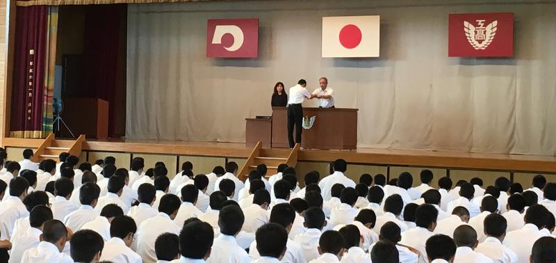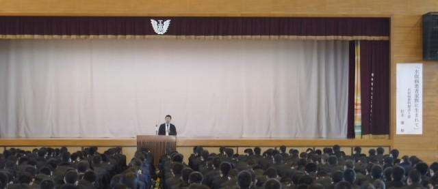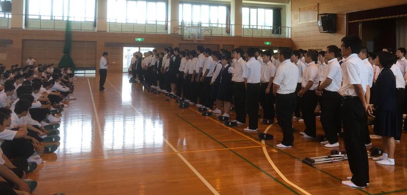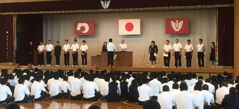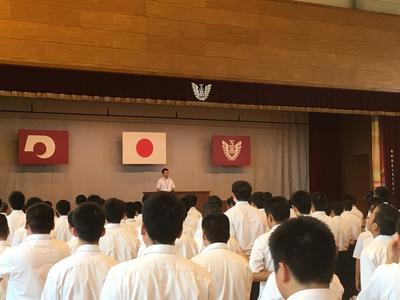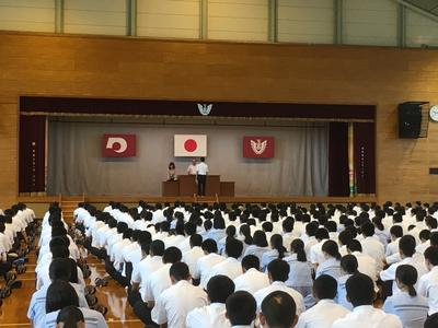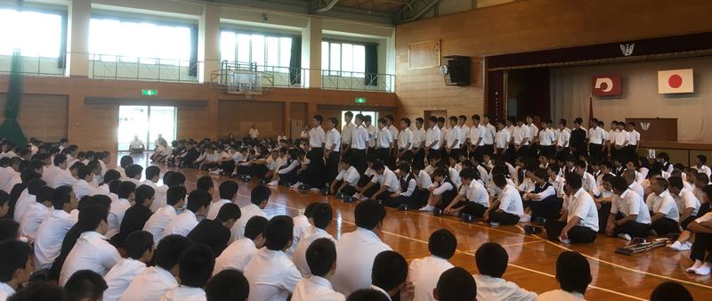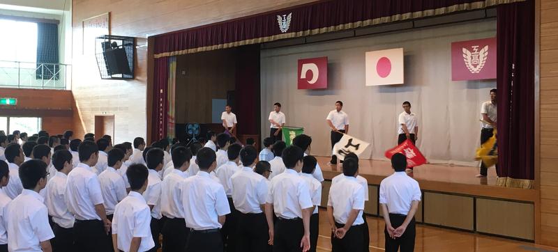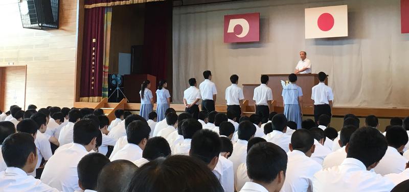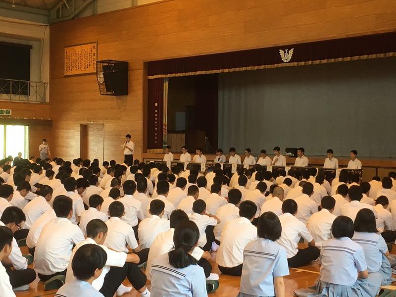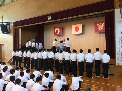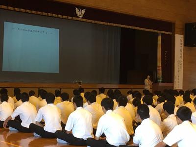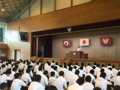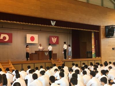 期末考査の最終日6月28日にいじめ防止講演会と高校総体表彰式と九州大会・野球部の選手推戴式が行われました。
