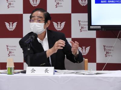 次に、学校側の説明として、富松氏からマイスターハイスクールビジョンの説明が行われ、教頭と主幹教諭が3年間の学校側の取組と評価について説明を行いました。