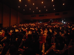 一般開放終了後、体育館に集まり最後は全校生徒の前で軽音楽部3年生の発表。