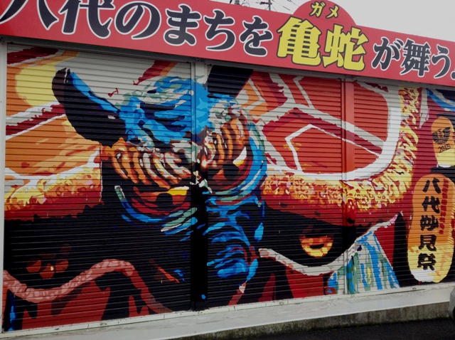 旭中央通りのタイヤ館さんのシャッターにインテリア科が制作中のシャッターアート。いよいよ完成が近付いてきたようですね!