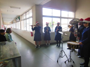 放課後に吹奏楽部の生徒たちが巡回クリスマスコンサートを行っていました(^O^)