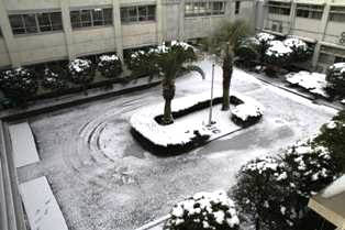 朝から職員室に歩いていると、突然頭上から「にゃー」