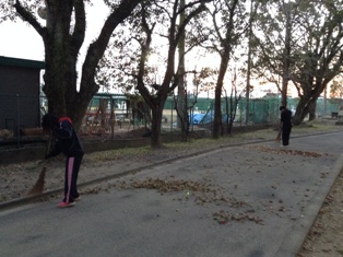 昨日は春の嵐が吹き荒れ、外庭掃除は大量の落ち葉と戦いました!おかげさまで新任の先生方もきれいな渡り廊下で体育館に向かわれました。