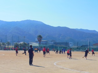 陸上部、サッカー部、テニス部、ソフトテニス部から部員を出し合い2時間の活動を行いました。