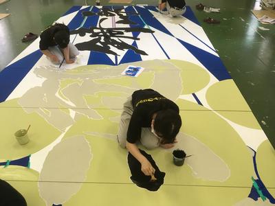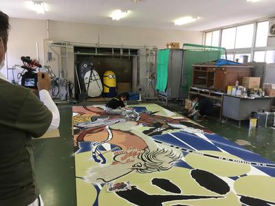 今年は妙見祭の神幸行列は中止ということで、関係者の方々の今回の壁画への想いは強く、たいへん喜んでいただきました。生徒たちも大きな達成感と、たくさんの人に喜んでもらえるものづくりの喜びを感じていました。