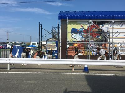 これまでのシャッターアートとは異なりとても大きな壁面です。