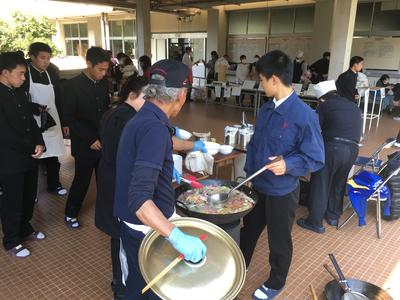 機械科ピロティで定時制やロケットストーブの実演と太平燕の振るまい