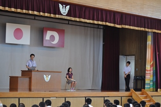 本日の放課後にALTのクリスティーン先生の退任式と、表彰式、推戴式が行われました。