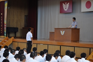 顧問の先生から選手紹介と学校長激励の言葉