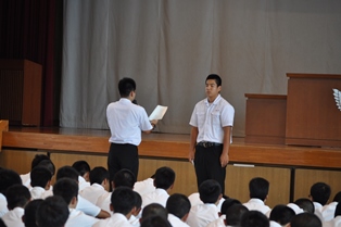 生徒会長激励の言葉と決意表明