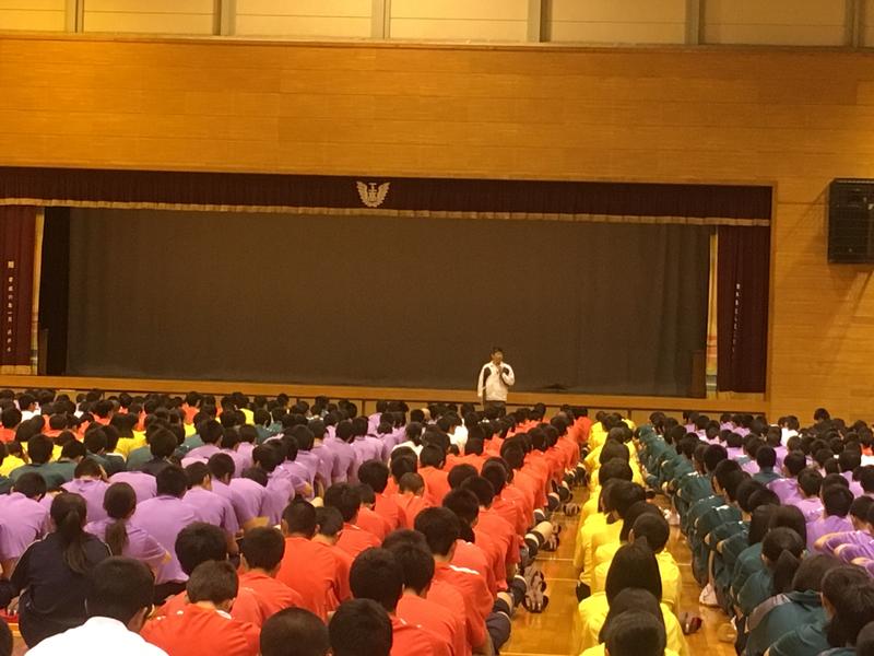 朝方の雨により体育館や周辺ピロティなどを利用して新体力テストがおこなわれました。