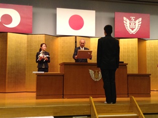 今日は3年生の表彰式後、卒業式の予行練習、そして同窓会入会式が行われました。