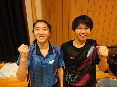 〈ダブルス出場を決めた笑顔の 太田・岩本ペア〉