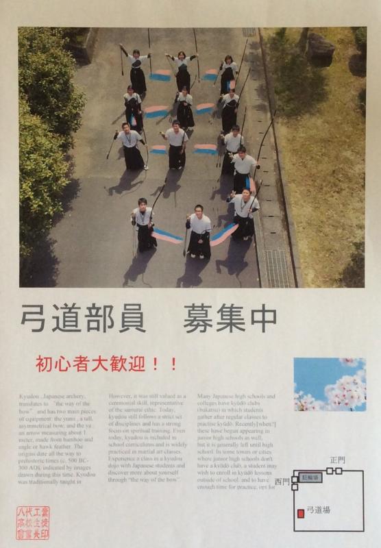 部員募集!!(男子弓道部) 投稿日時 : 2021/04/10 部活動 新入生の皆さん、八代工業高校へのご入学おめでとうございます。 男子弓道部は7名(3年生3名、2年生4名)で活動しています。 高校から新しいことを始めようと思っている人、是非弓道場に来て、練習を見学してください。 顧問 光永