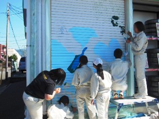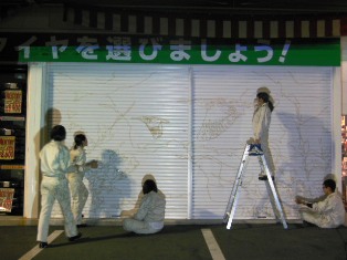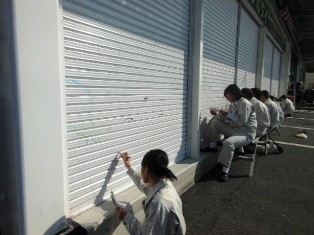 初めてのシャッターアートですが、みんなで勉強しながら作業を進めています。
