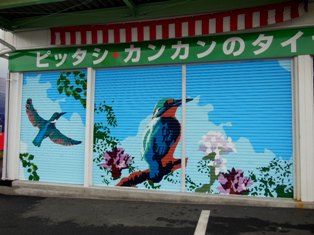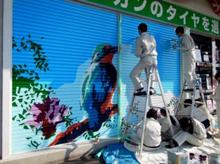 3年グラフィックデザイン班で取り組んでいる旭中央通り交差点のタイヤ館さんから依頼を受けているシャッターアート。