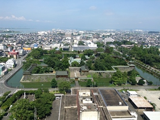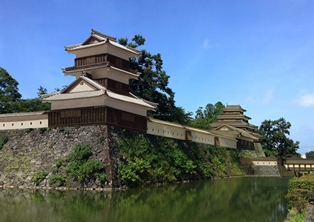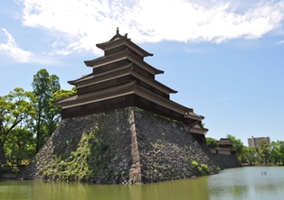インテリア科3年生の課題研究グラフィックデザイン班で、八代城跡の石垣と、未来の森ミュージアムにある模型をコンピュータグラフィックスで合成し、現在の石垣にお城があったらどうなるかをつくってみました。