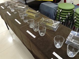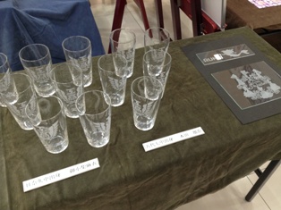 左:サンドブラストによるガラス彫刻 右:ステンドグラスによるティッシュケース